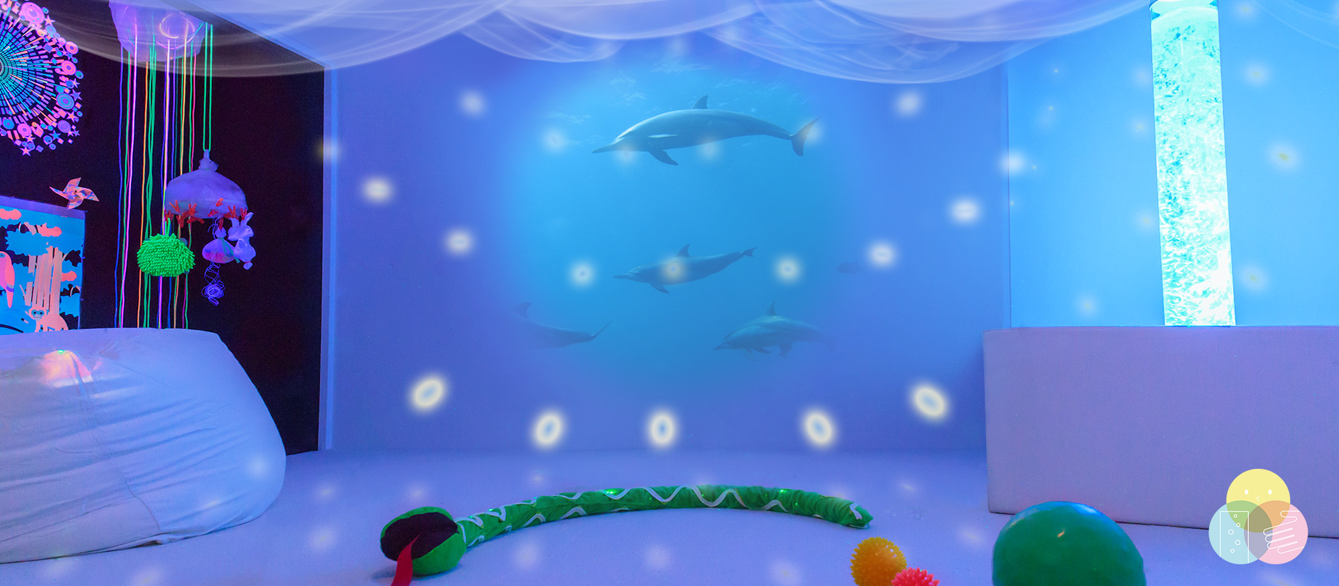 WizeFloor(ワイズフロア)は、床に投影したインタラクティブな映像を使った遊びや身体活動を通じて、集団での活動及び個々のニーズに合わせた学習ゲームや感覚遊びを提供します。