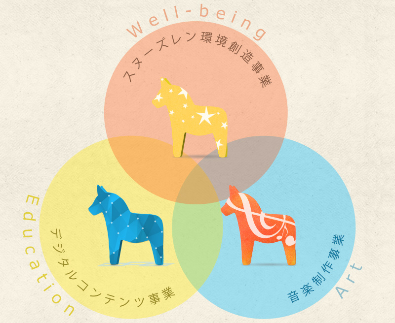 教育・福祉・アート、それぞれの角度からアプローチした様々なメディアを通じて「子どもの健全な頭・心・体の育成」と、子どもに最も影響を与える「周囲の大人が穏やかに過ごせる環境創り」を目標とした事業に取り組んでいます。